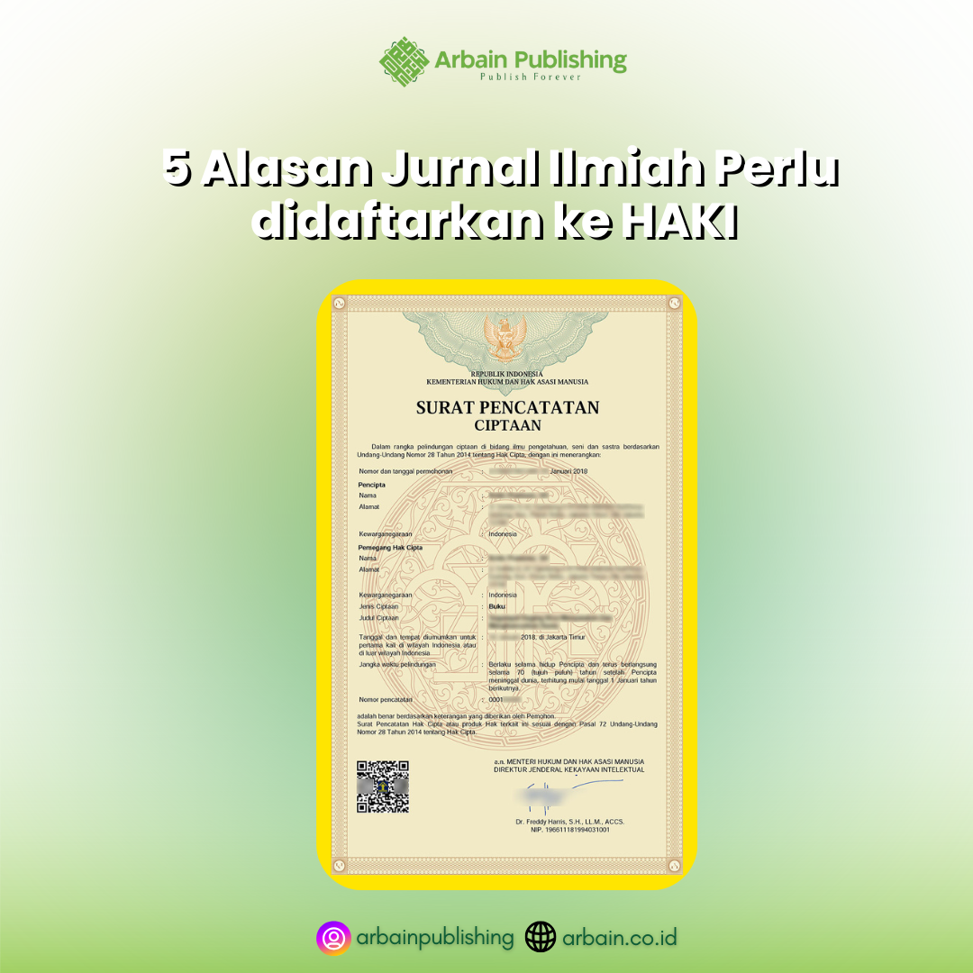 Di dunia akademik, jurnal ilmiah merupakan bentuk nyata dari kontribusi intelektual peneliti, dosen, maupun mahasiswa. Namun sayangnya, masih banyak penulis jurnal yang belum memahami pentingnya mendaftarkan jurnal ilmiahnya ke HAKI (Hak Atas Kekayaan Intelektual). Padahal, HAKI bukan hanya perlindungan hukum, tetapi juga bentuk penghargaan terhadap karya intelektual yang berdampak luas.